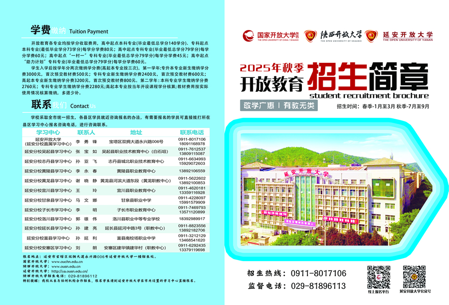 延安開(kāi)放大學(xué)2025年秋季招生報(bào)名已經(jīng)開(kāi)始啦!