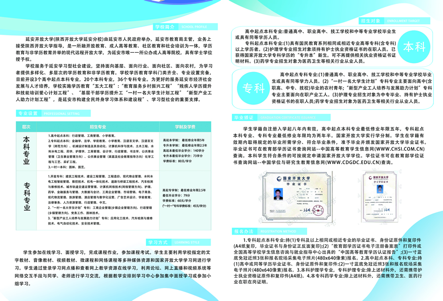 (延安電大)報(bào)名地點(diǎn): 延安開(kāi)放大學(xué)一樓招生處